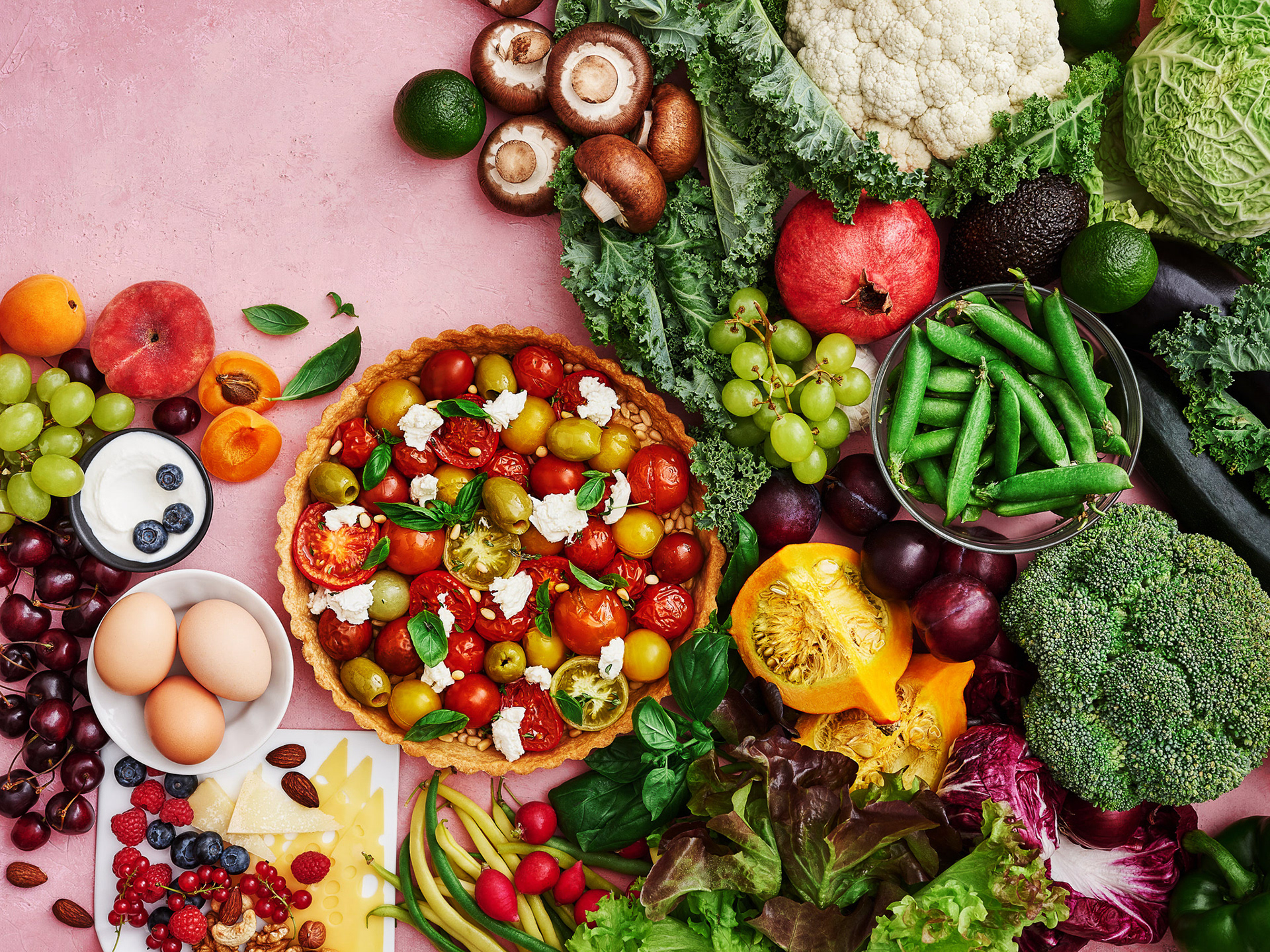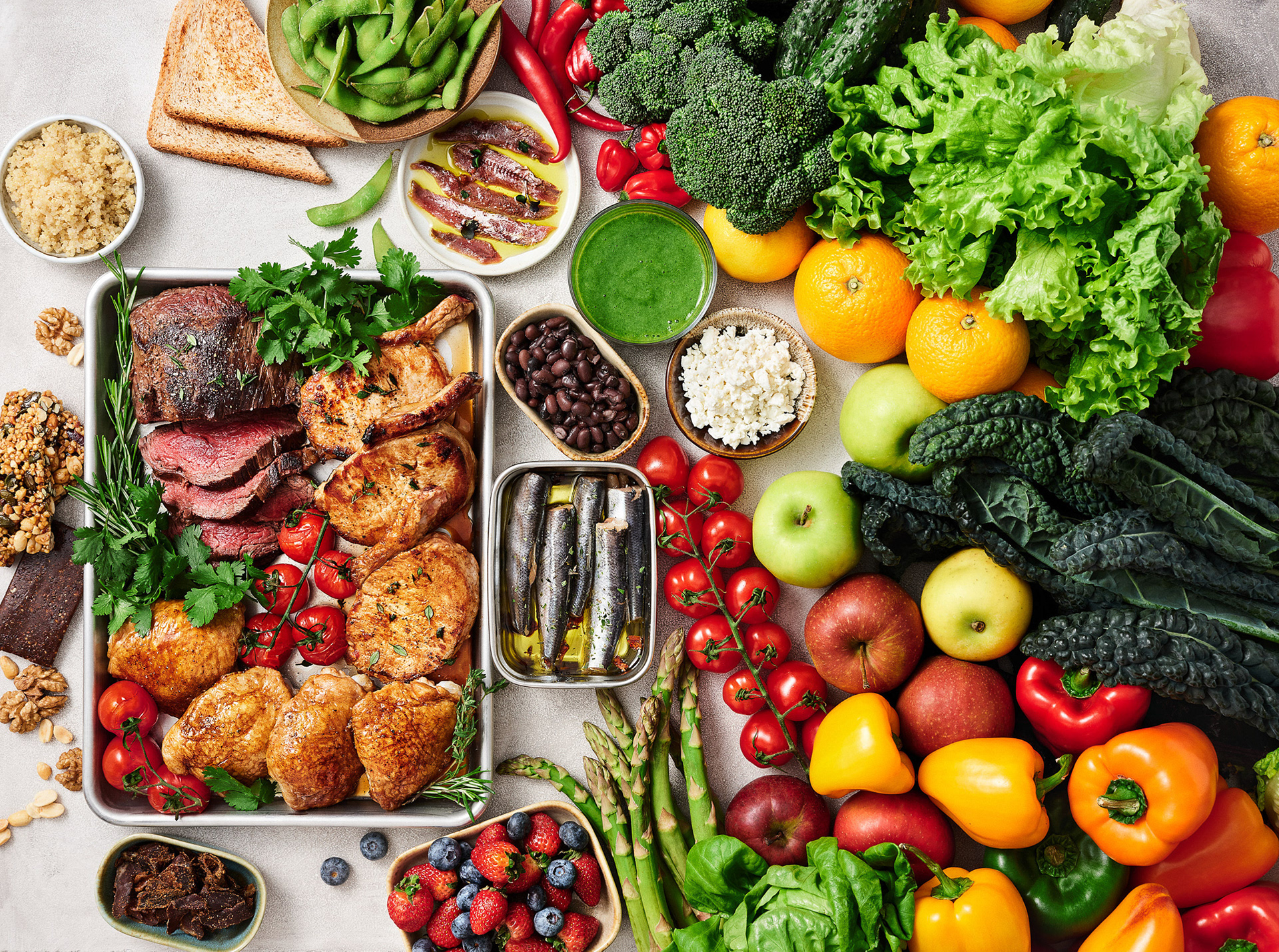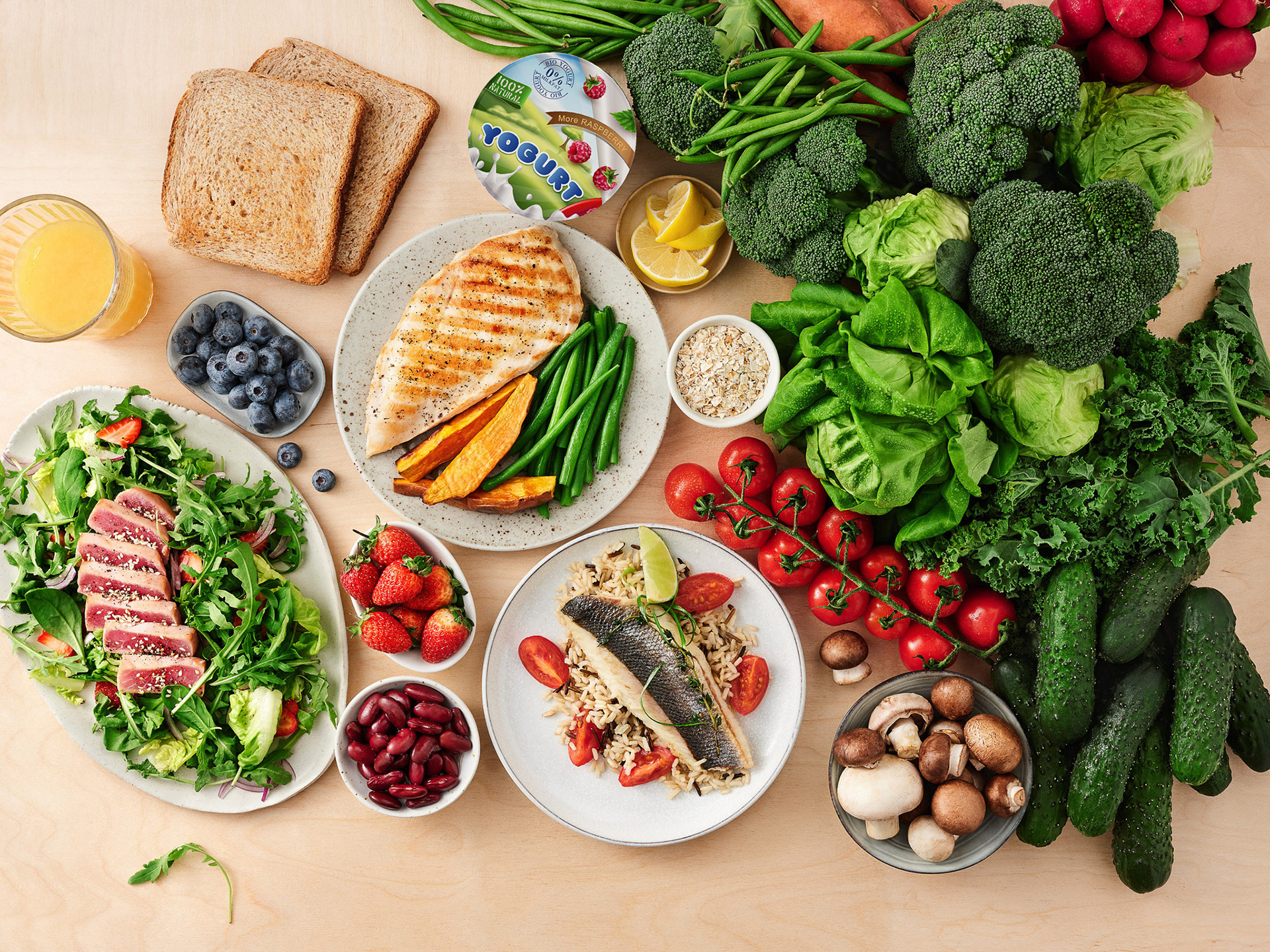 Food and prop styling of website and mobile cover images for various types of diets (Vegan, Keto, Mediterranean, etc.)