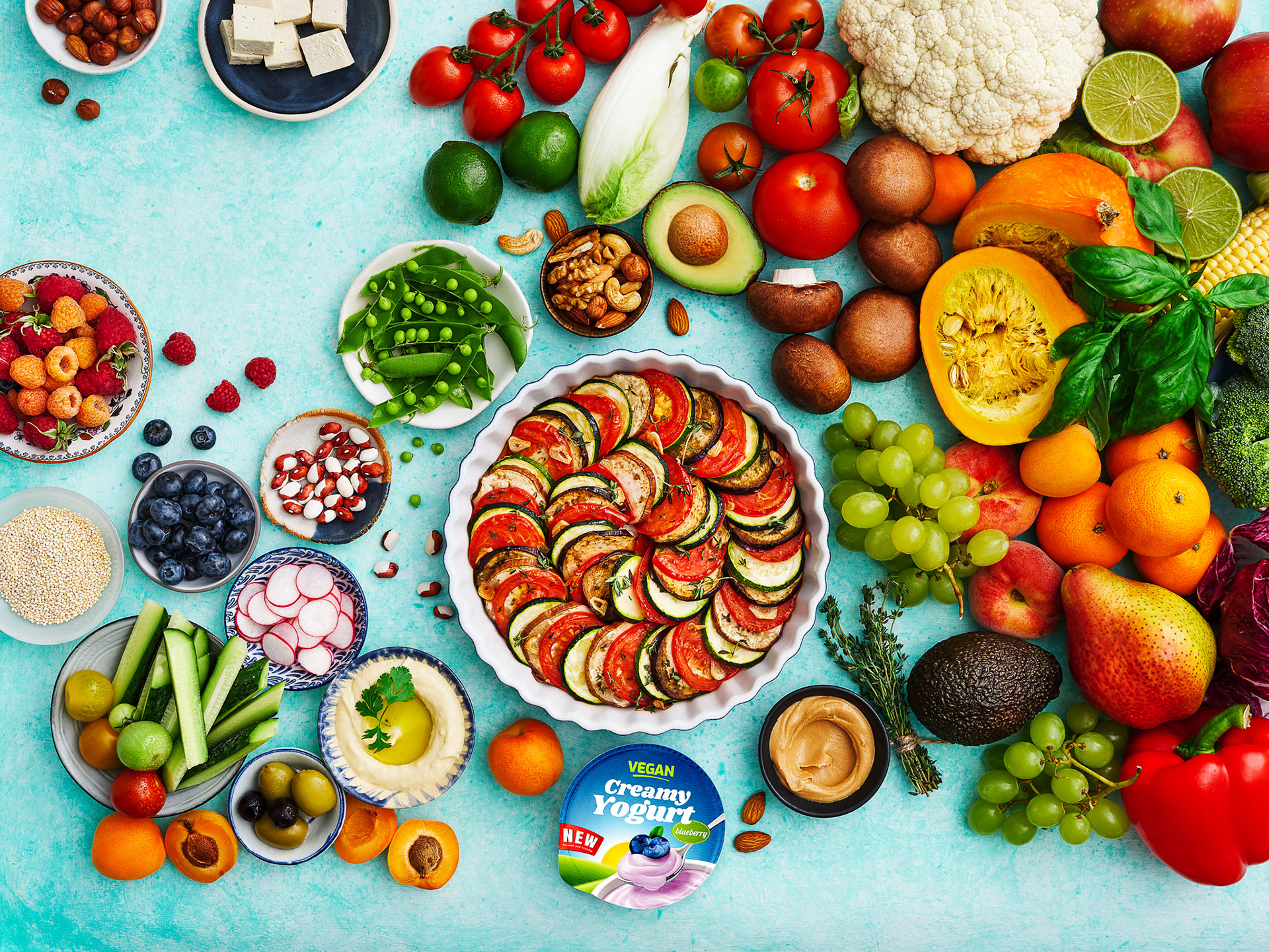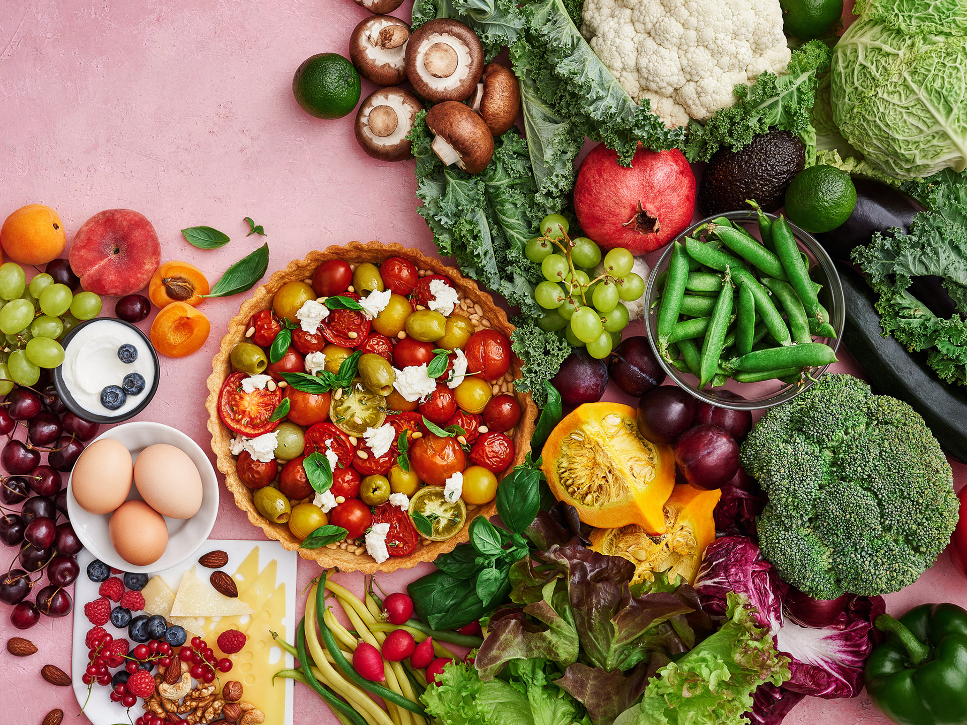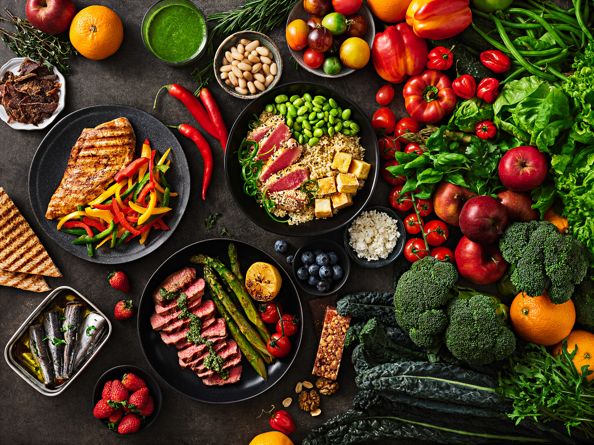 Food and prop styling of website and mobile cover images for various types of diets (Vegan, Keto, Mediterranean, etc.)
